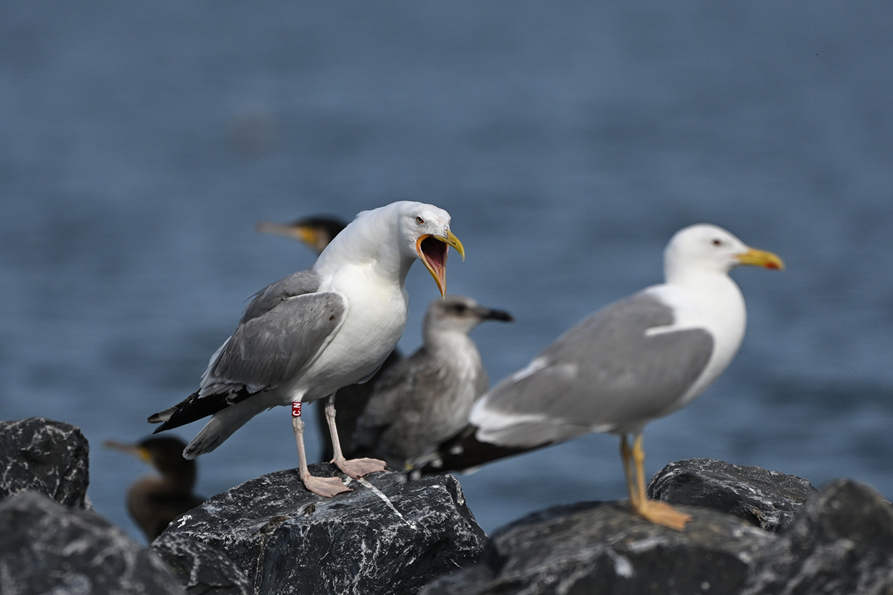 below: Caspian Gull cachinnans C.N 3CY, July 19 2024, colony De Kreupel, the Netherlands. Picture: Thijs Horst & Mars Muusse.