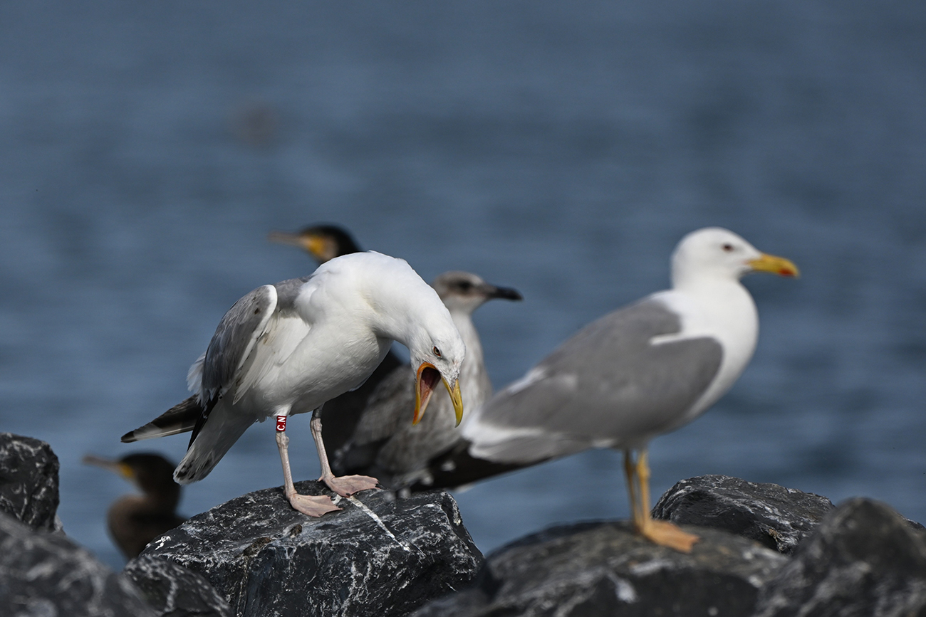 below: Caspian Gull cachinnans C.N 3CY, April 08 2024, colony Lelystad, the Netherlands. Picture: Thijs Horst & Mars Muusse.