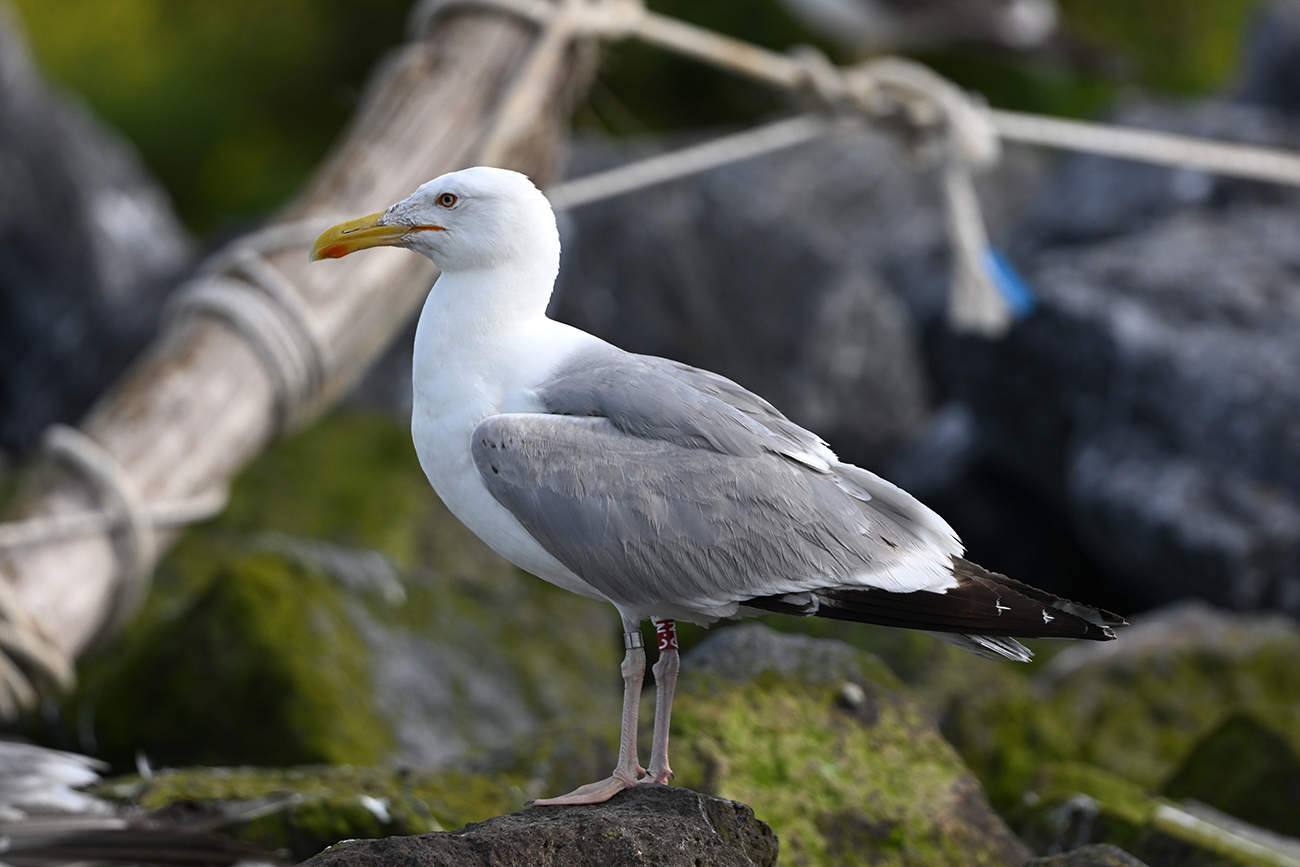 Red tibia ring r[C.N] and metal NLA 5.625.064, ringed as pullus Larus cachinnans at nest 12 on May 09 2022 in colony Lelystad, the Netherlands. Ringer: Roland-Jan Buijs.