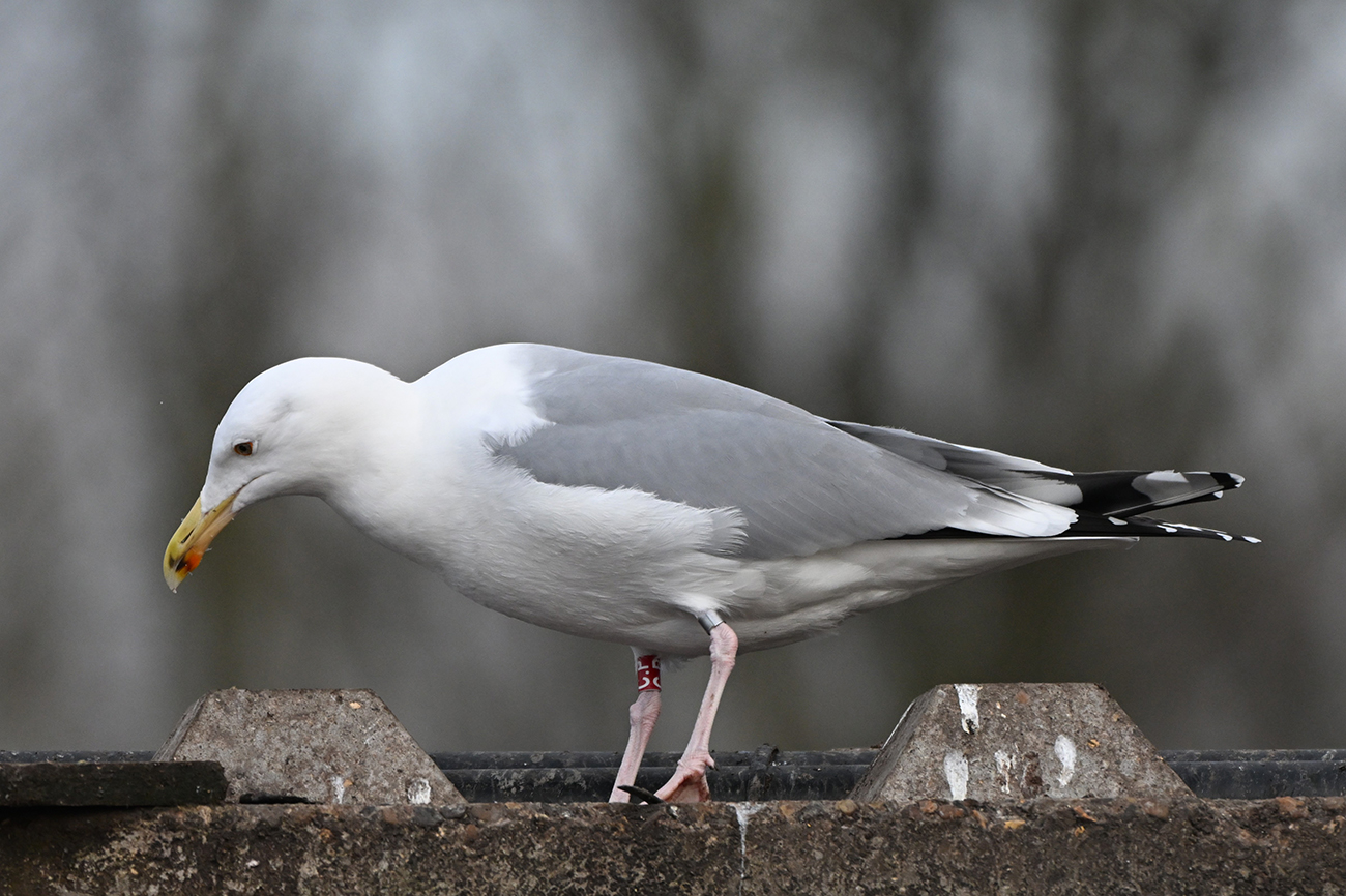 Red tibia ring r[C.P] and metal NLA 5.625.065, ringed as pullus Larus cachinnans at nest 227 on May 09 2022 in colony Lelystad, the Netherlands. Ringer: Roland-Jan Buijs.