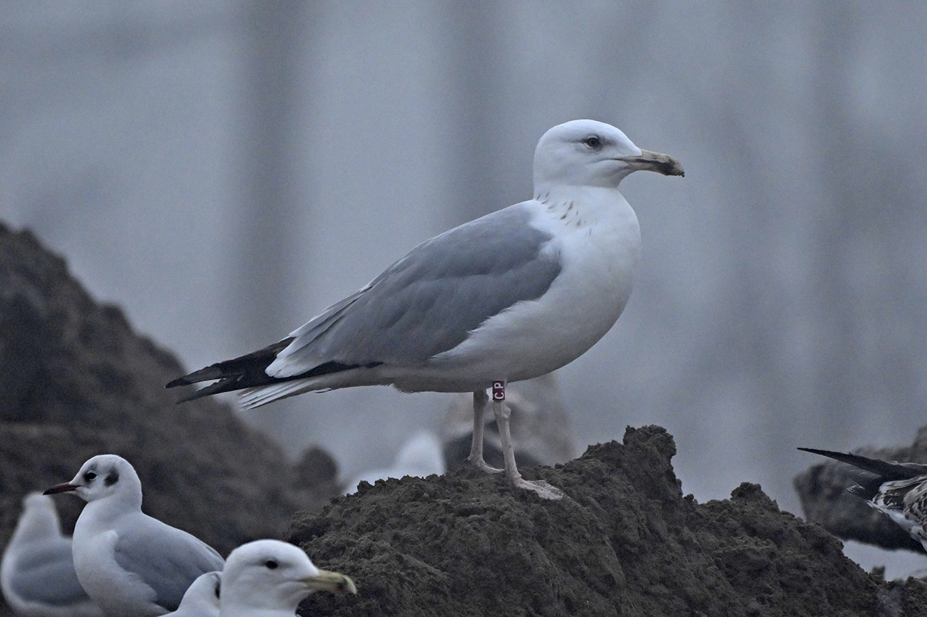 below: Caspian Gull cachinnans C.P 4CY, March 16 2025, colony Lelystad, the Netherlands. Picture: Thijs Horst & Mars Muusse.