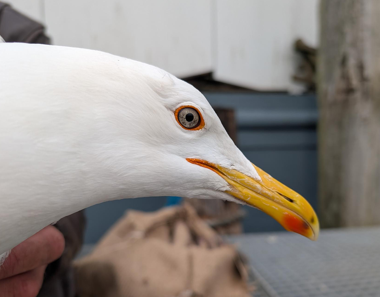 below: Caspian Gull cachinnans F.L 4CY, June 25 2024, colony Lelystad, the Netherlands. Picture: Thijs Horst.