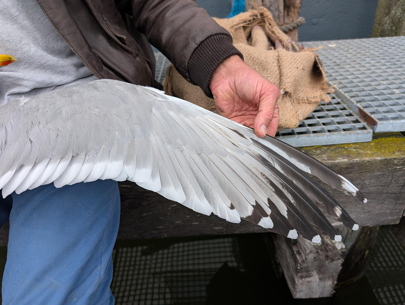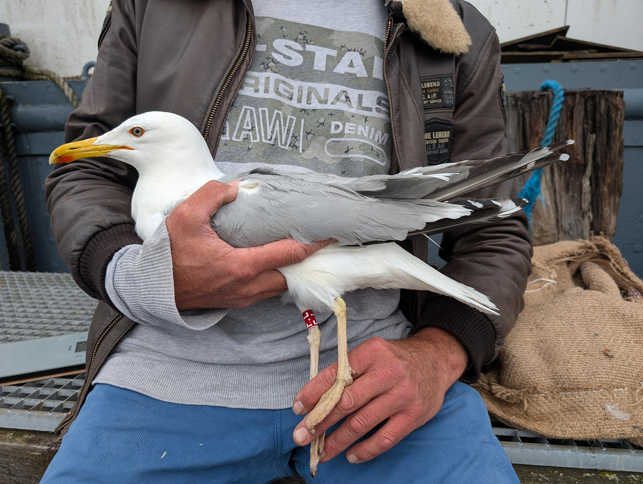 below: Caspian Gull cachinnans F.L 4CY, December 23 2024, Almere - De Vaart, the Netherlands. Picture: Thijs Horst.