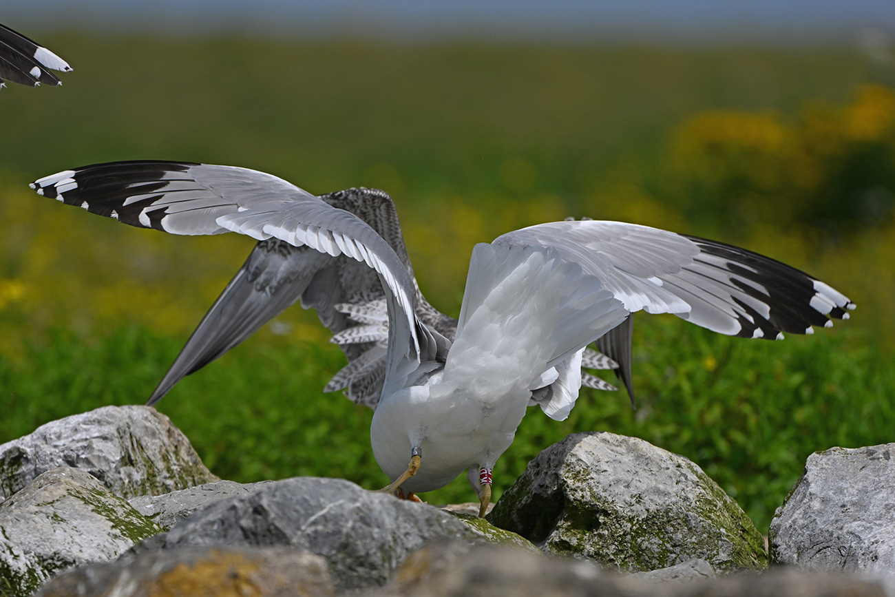 below: Caspian Gull cachinnans K.D adult, July 13 2025, colony De Kreupel, the Netherlands. Picture: Thijs Horst & Mars Muusse.