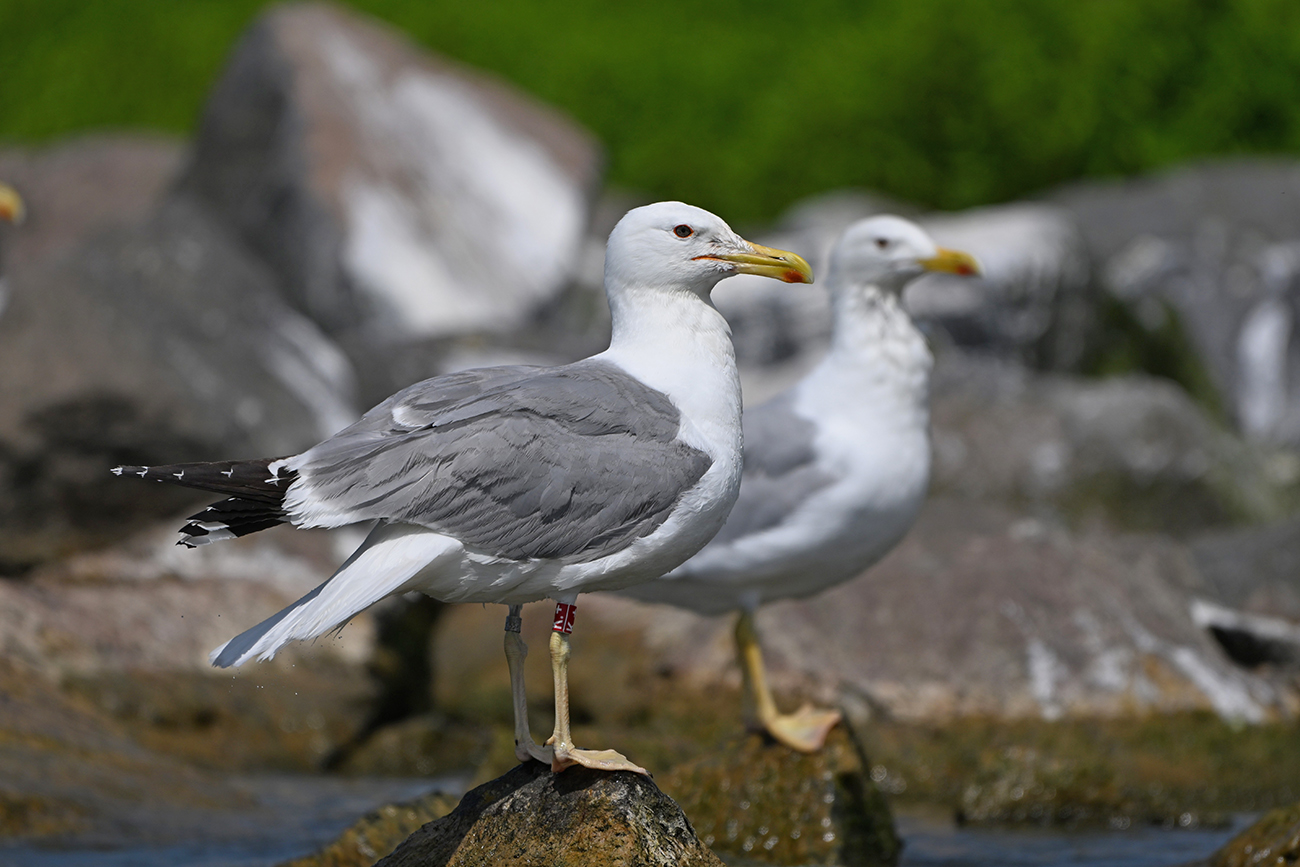 below: Caspian Gull cachinnans K.+ 5CY, July 13 2025, colony De Kreupel, the Netherlands. Picture: Thijs Horst & Mars Muusse.
