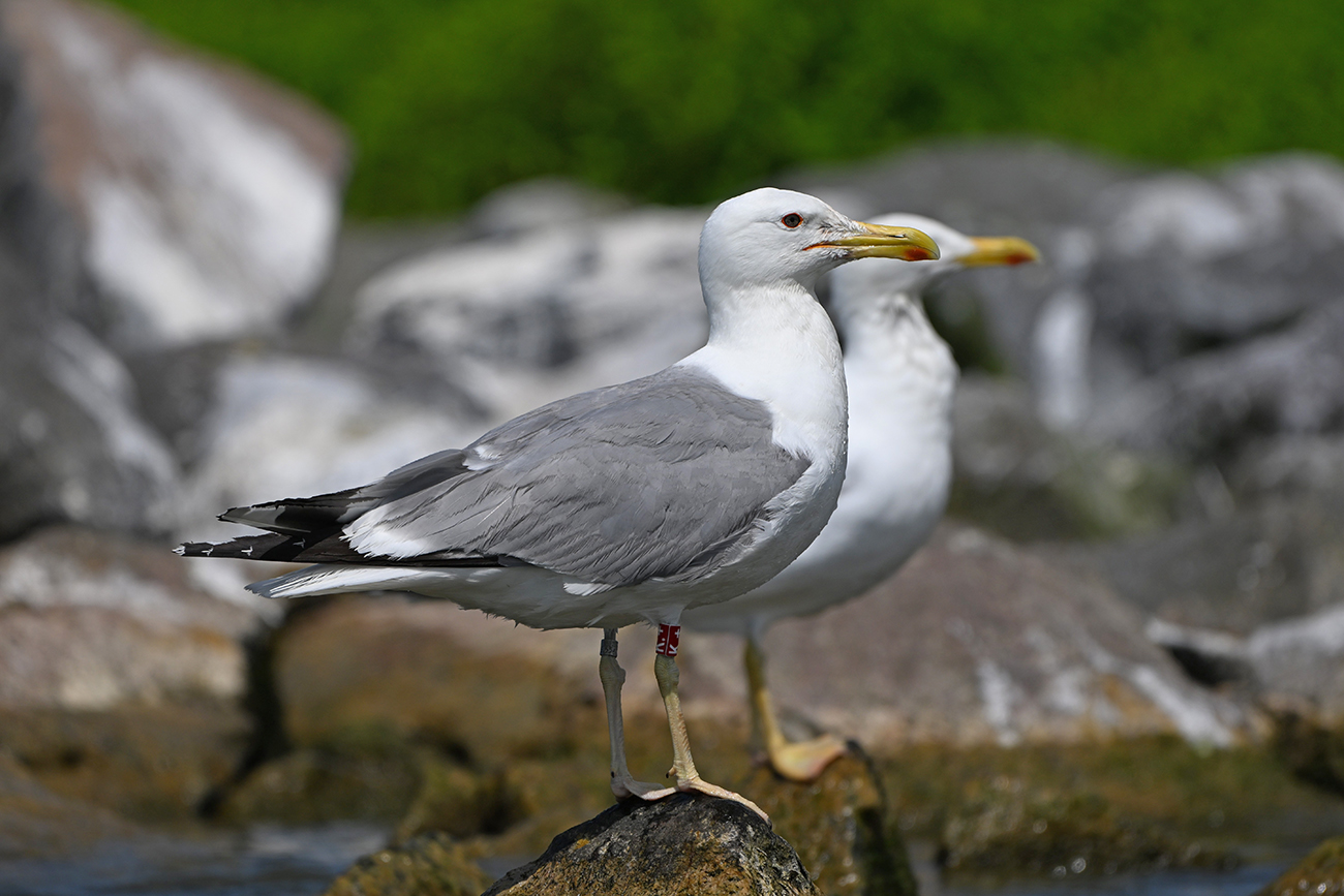 Red tibia ring r[K.+] & metal NLA 5.556.733, ringed as pullus Larus cachinnans on May 14 2021 at nest L01 in colony De Kreupel, the Netherlands.