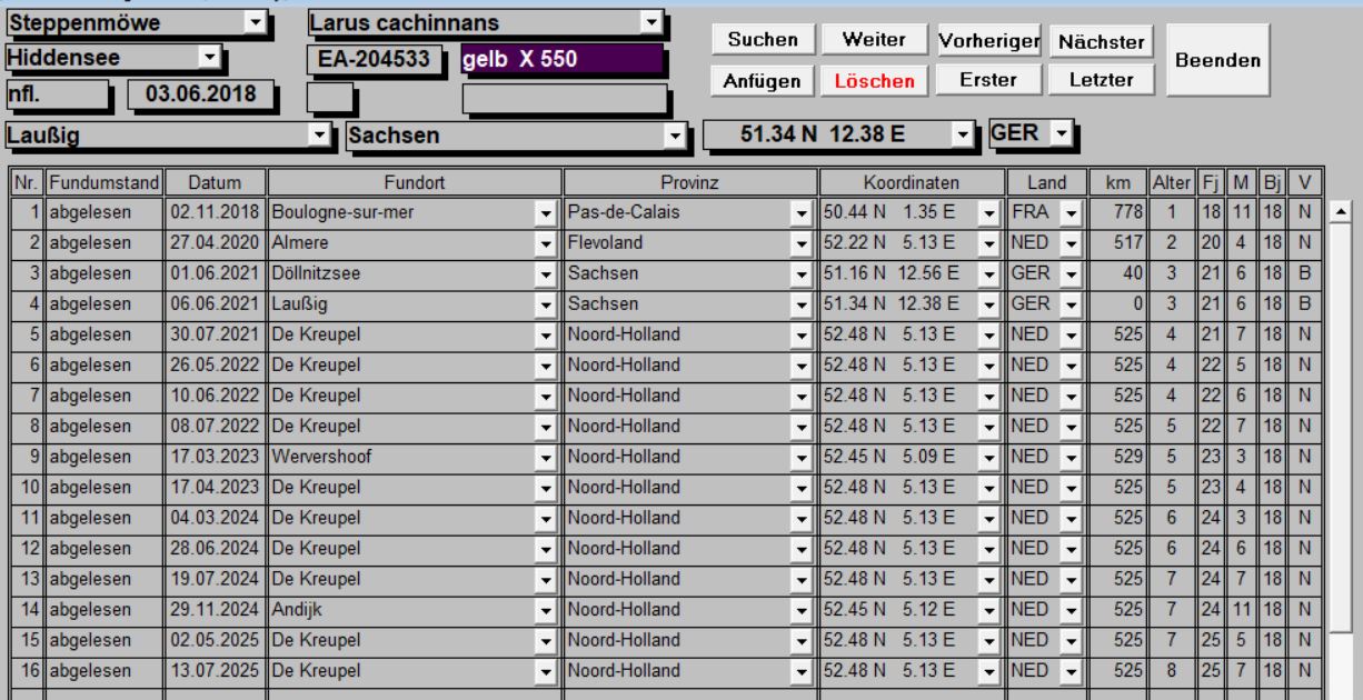 Caspian Gull cachinnans hybrid X550 5CY-8CY, 2002-2025, colony De Kreupel, the Netherlands. Picture: Leon Kelder, Thijs Horst & Mars Muusse.DEH EA-204533 and