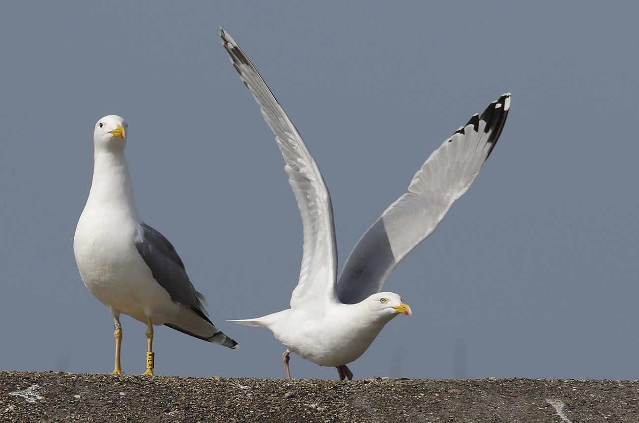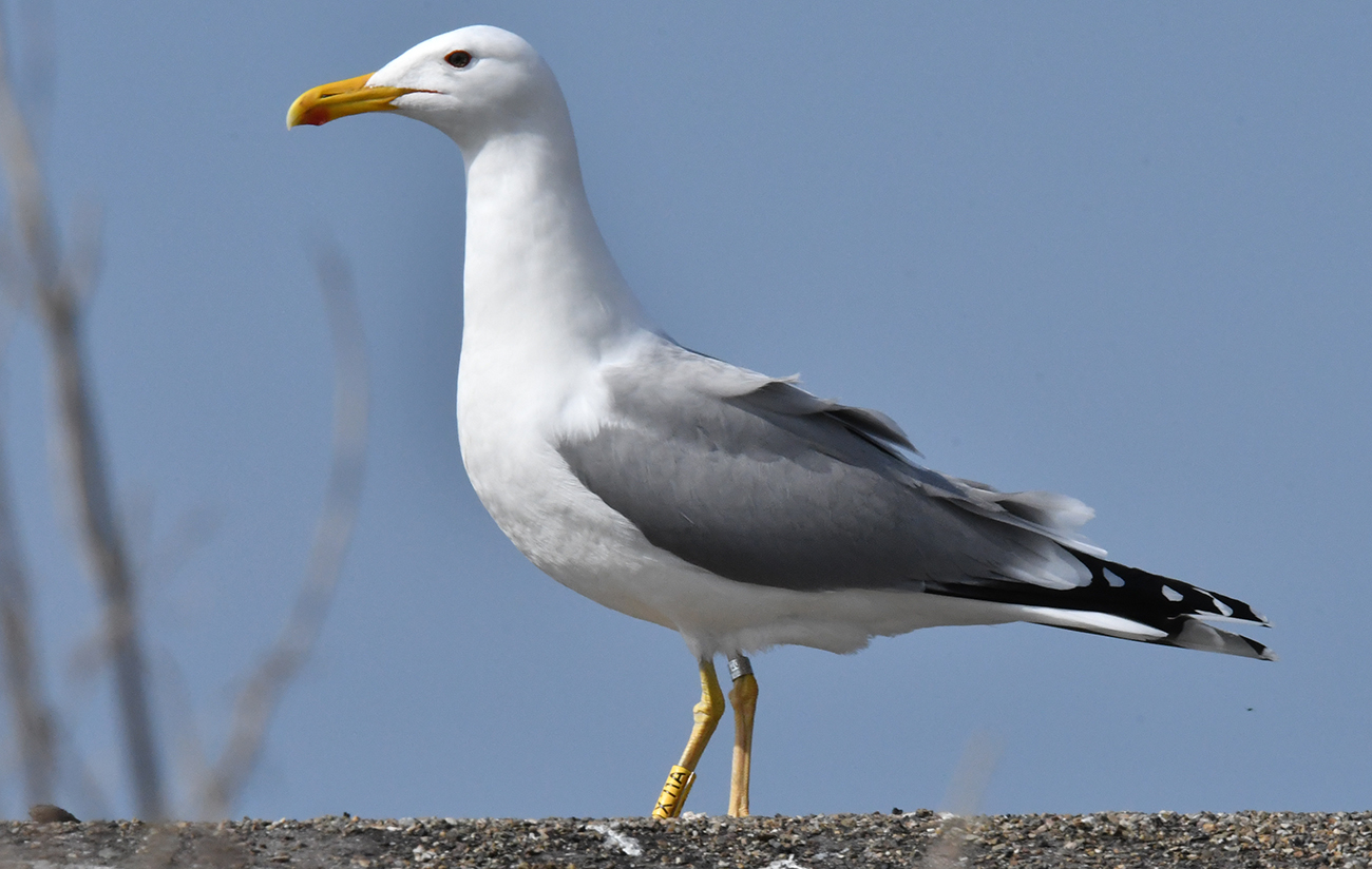 below: Caspian Gull cachinnans hybrid-type X71A 6CY male, June 25 2023, Lelystad, the Netherlands. Picture: Mars Muusse & Thijs Horst.