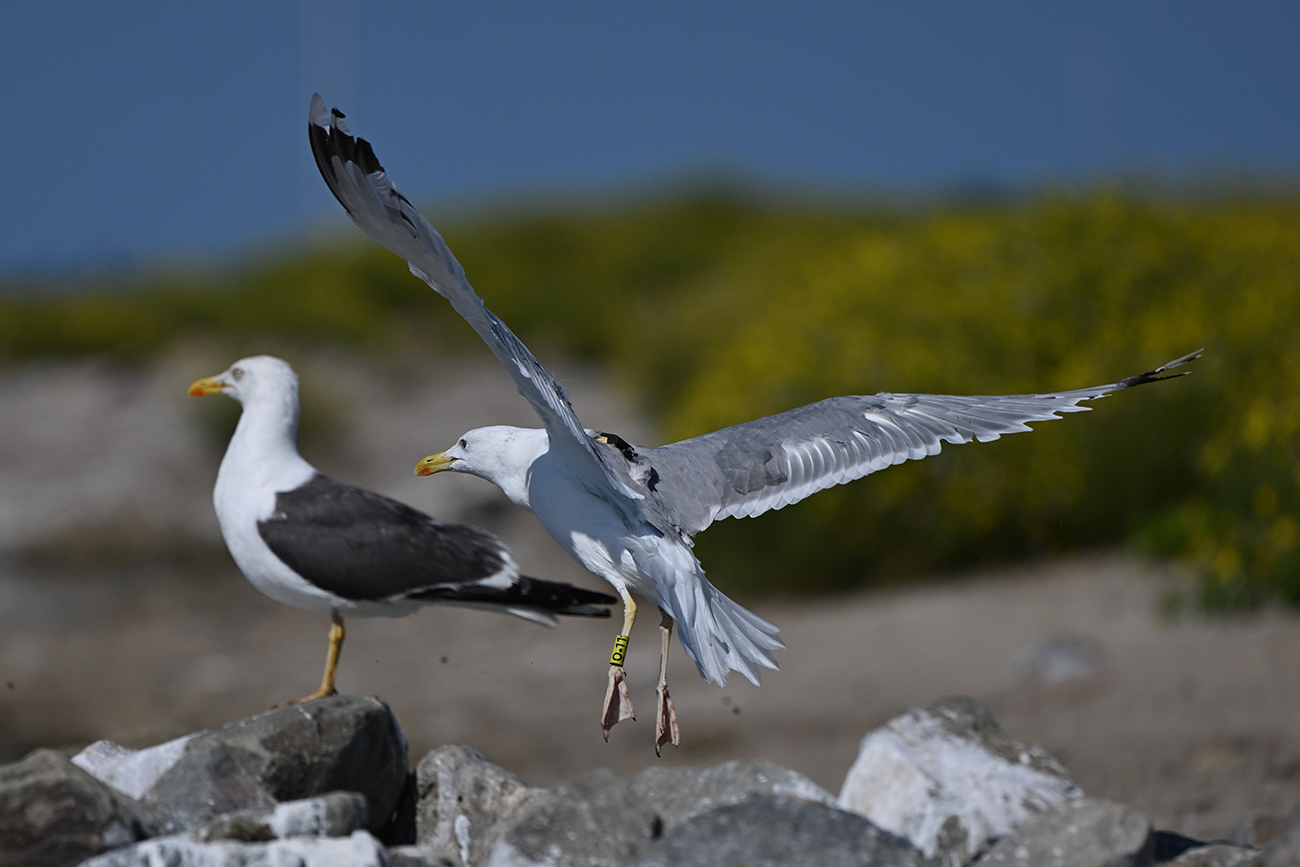 Nest is M1, partner is unringed adult Larus cachinnans.