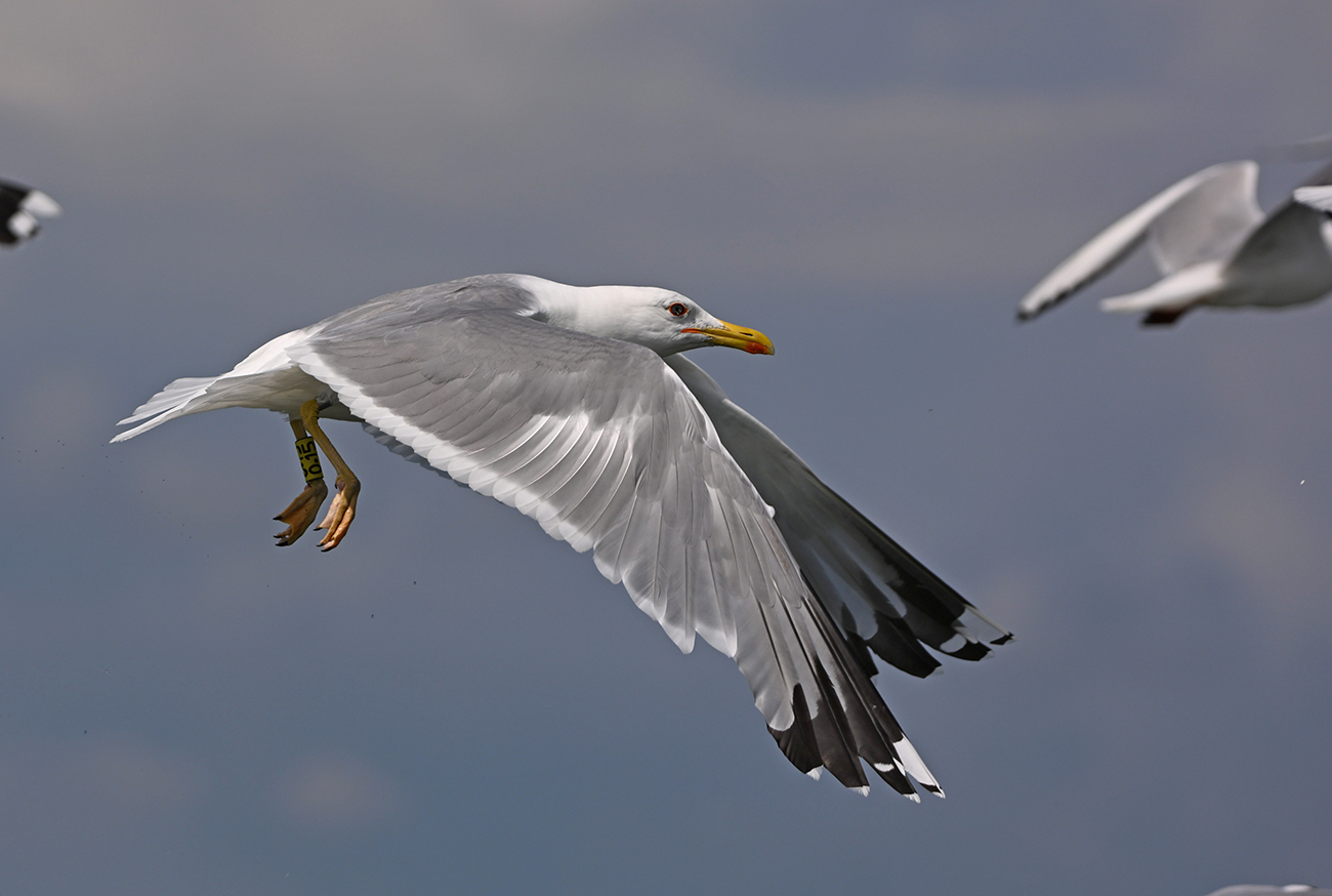 Tarsus ring y-X712 & DEH EA204712, ringed as pullus Larus cachinnans on May 31 2017 in a mixed colony at Gräbendorfer See, Germany.