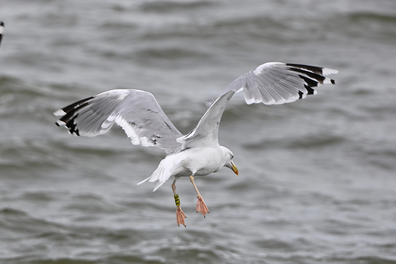 Caspian Gull cachinnans 0.23 adult, 2024-2025, the Netherlands. Picture: Thijs Horst & Mars Muusse.Tarsus ring y-0.23, ringed as breeding adult Larus cachinnans on April 26 2024 at De Kreupel - island Q, the Netherlands (5247.00 N 513.00 E). Ringer Kees Camphuysen & Leon Kelder. Recoveries:
