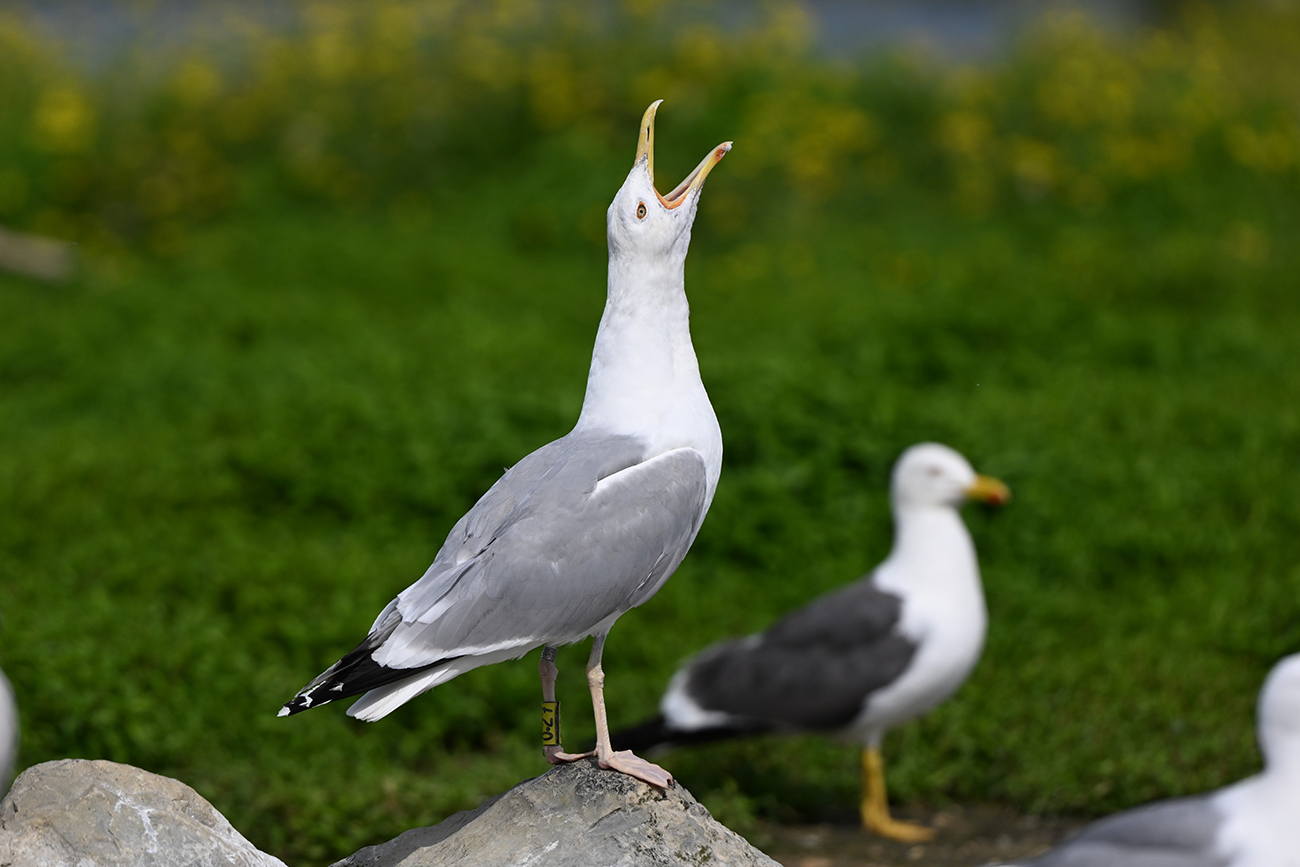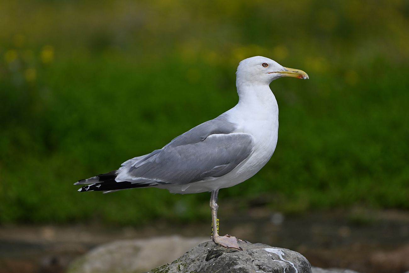 Caspian Gull cachinnans 0.27 adult, 2024-2025, colony De Kreupel, the Netherlands. Picture: Thijs Horst & Mars Muusse.Tarsus ring y-0.27, ringed as breeding adult Larus cachinnans on May 03 2024 at De Kreupel - island Q, the Netherlands (5247.00 N 513.00 E). Ringer Kees Camphuysen & Leon Kelder. Recoveries: