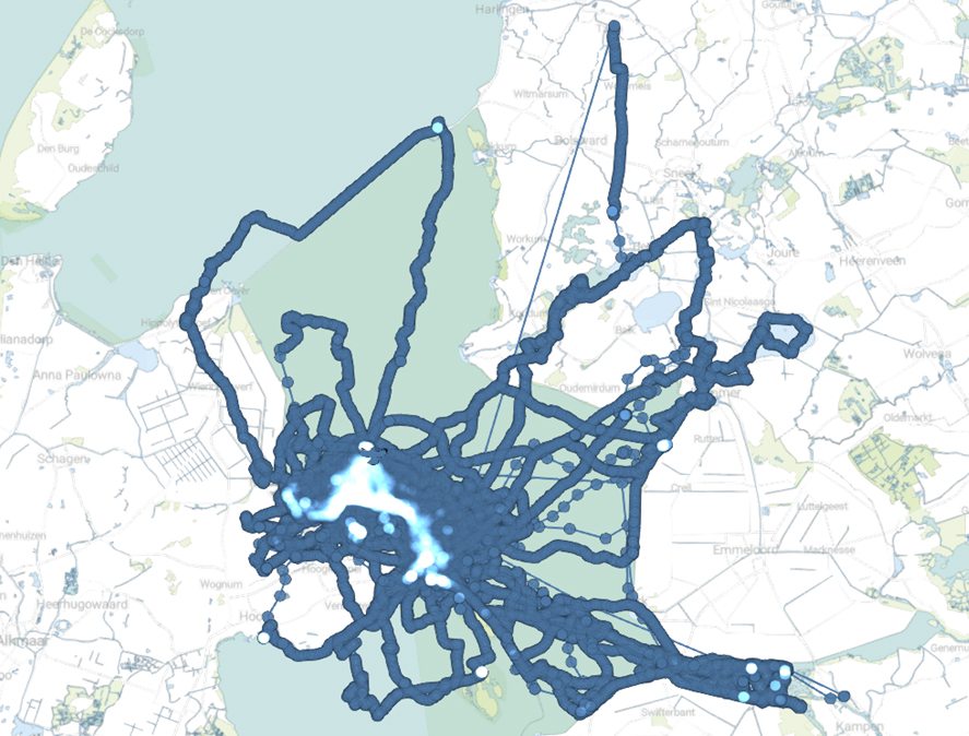 below: Caspian Gull cachinnans hybrid 0.33 (was XPNU), April 25 - July 07 2025. Picture: GPS logger plot Uva-BITS.