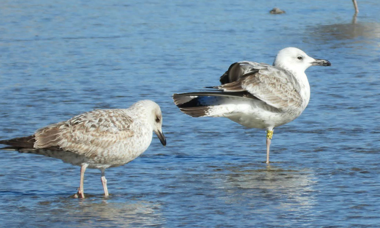 below: Caspian Gull cachinnans A:6 2CY, March 09 2026, Estuario do Douro, Portugal. Picture: Helder Vieira.