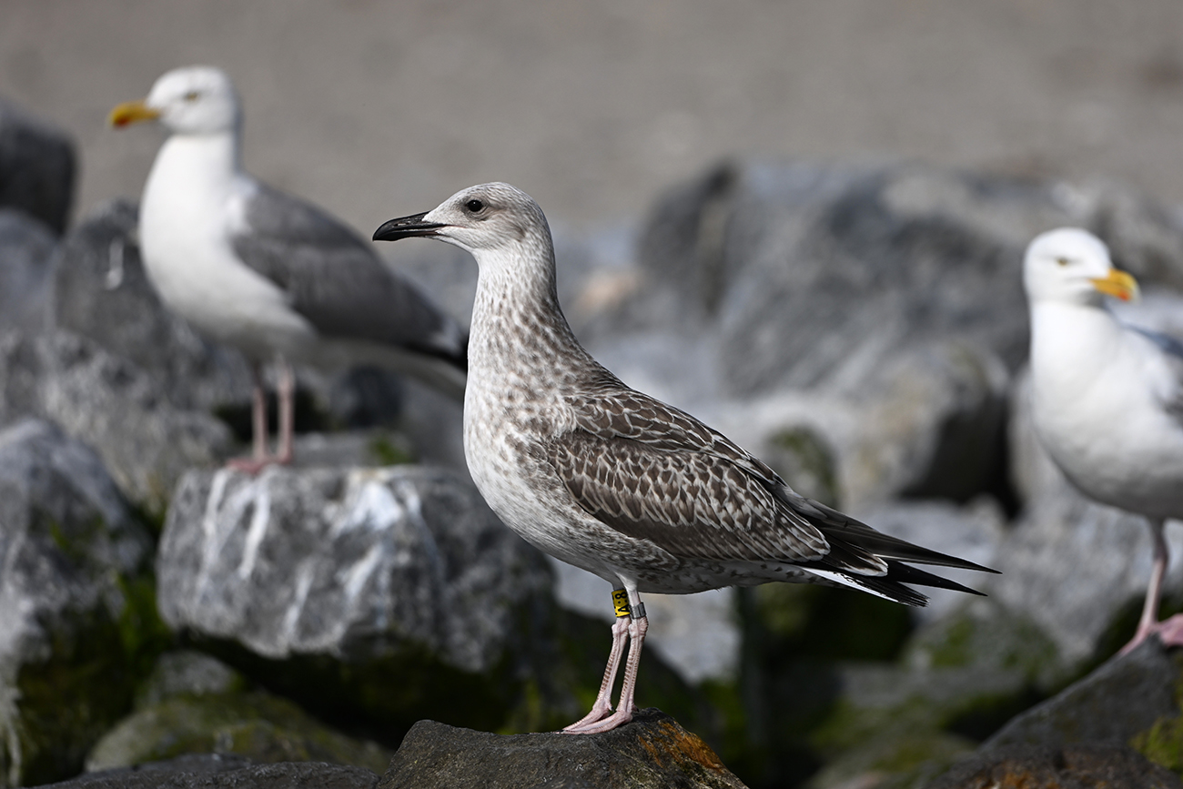 Caspian Gull cachinnans A:8 1CY, 2025, colony De Kreupel, the Netherlands. Picture: Thijs Horst & Mars Muusse.