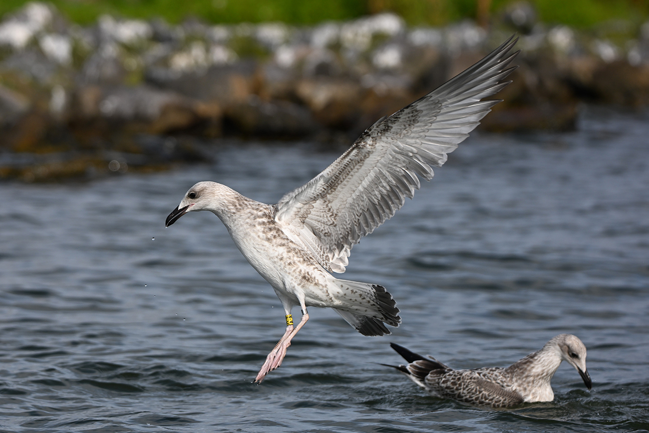 below: Caspian Gull cachinnans A:8 1CY, July 18 2025, colony De Kreupel, the Netherlands. Picture: Thijs Horst & Mars Muusse.