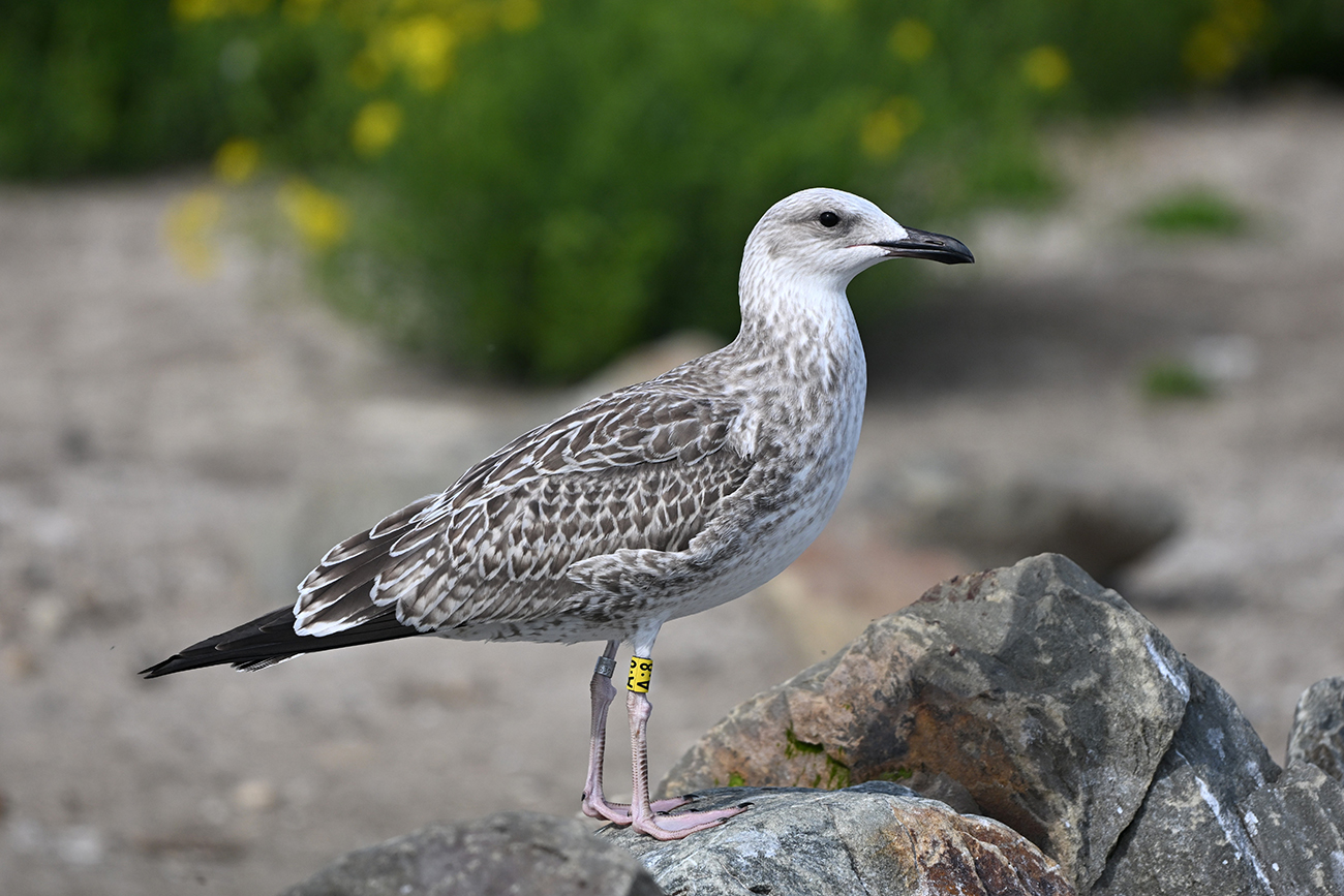 Tibia Y-A:8 and metal 5.632.621, ringed as pullus Larus cachinnans on May 09 2025 at IJsselmeer (De Kreupel), Noord-Holland, by ringer Leon Kelder.