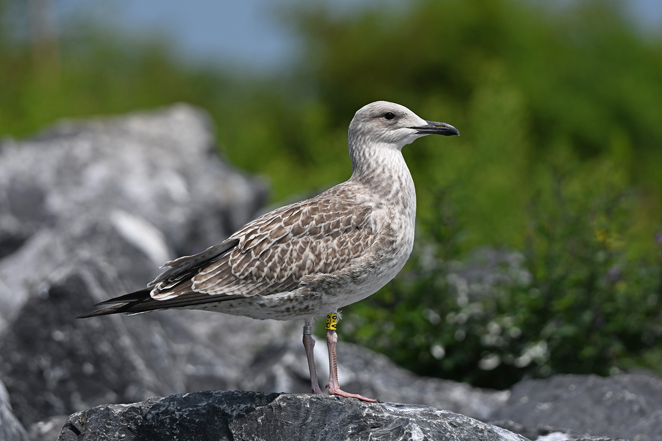 Tibia Y-A:9 and metal 5.632.622, ringed as pullus Larus cachinnans on May 09 2025 at IJsselmeer (De Kreupel), Noord-Holland, by ringer Leon Kelder.