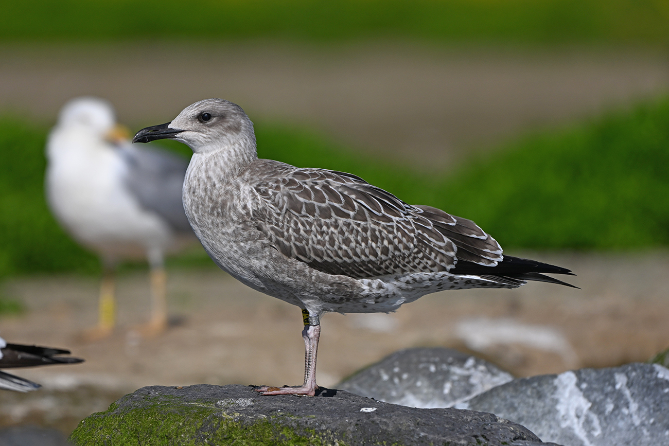 below: Caspian Gull cachinnans A:9 1CY, July 13 2025, colony De Kreupel, the Netherlands. Picture: Thijs Horst & Mars Muusse.
