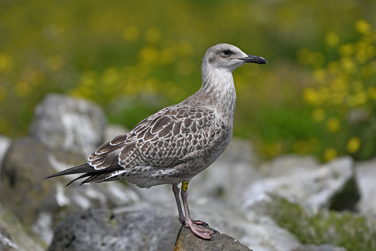Tibia Y-A:A and metal 5.632.623, ringed as pullus Larus cachinnans on May 09 2025 at IJsselmeer (De Kreupel), Noord-Holland, by ringer Leon Kelder.