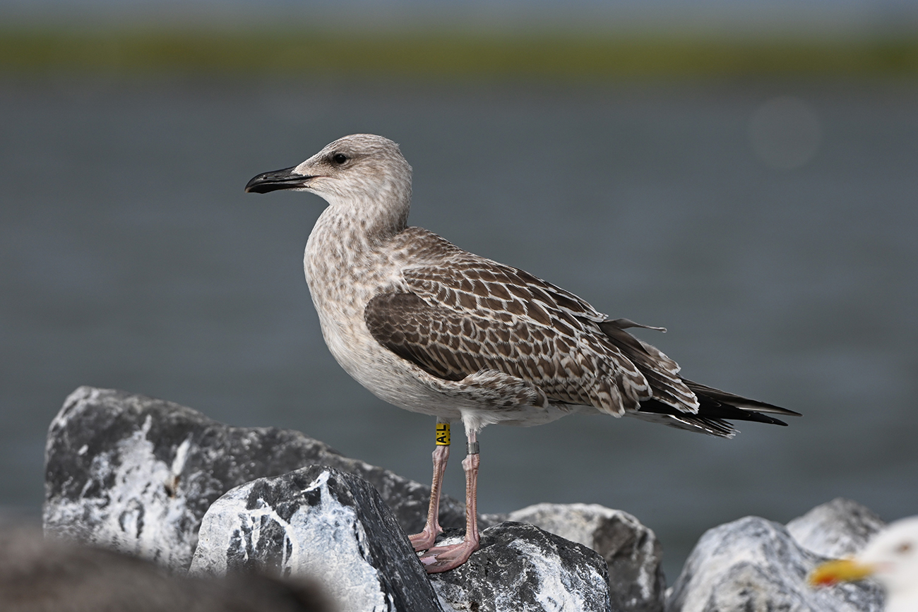 below: Caspian Gull cachinnans A:L 1CY, July 18 2025, colony De Kreupel, the Netherlands. Picture: Thijs Horst & Mars Muusse.