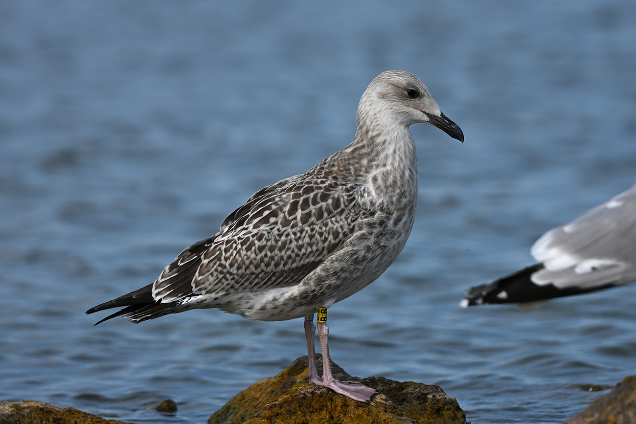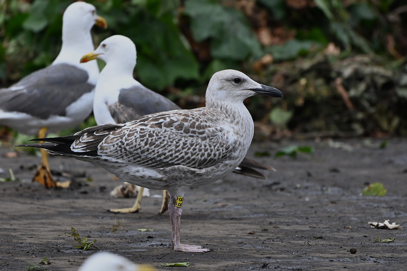 Tibia Y-B:B and metal 5.633.710, ringed as pullus Larus cachinnans on May 16 2025 at IJsselmeer (De Kreupel), Noord-Holland, by ringer Leon Kelder.