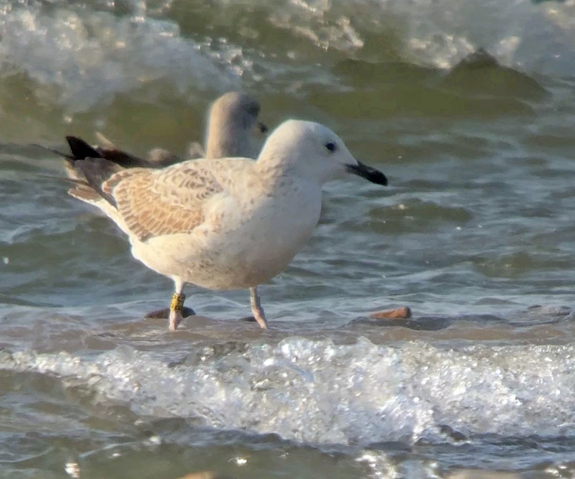 below: Caspian Gull cachinnans B:G 2CY, March 04 2026, Ogmore estuary - Wales, U.K. Picture: Tate Loyd.