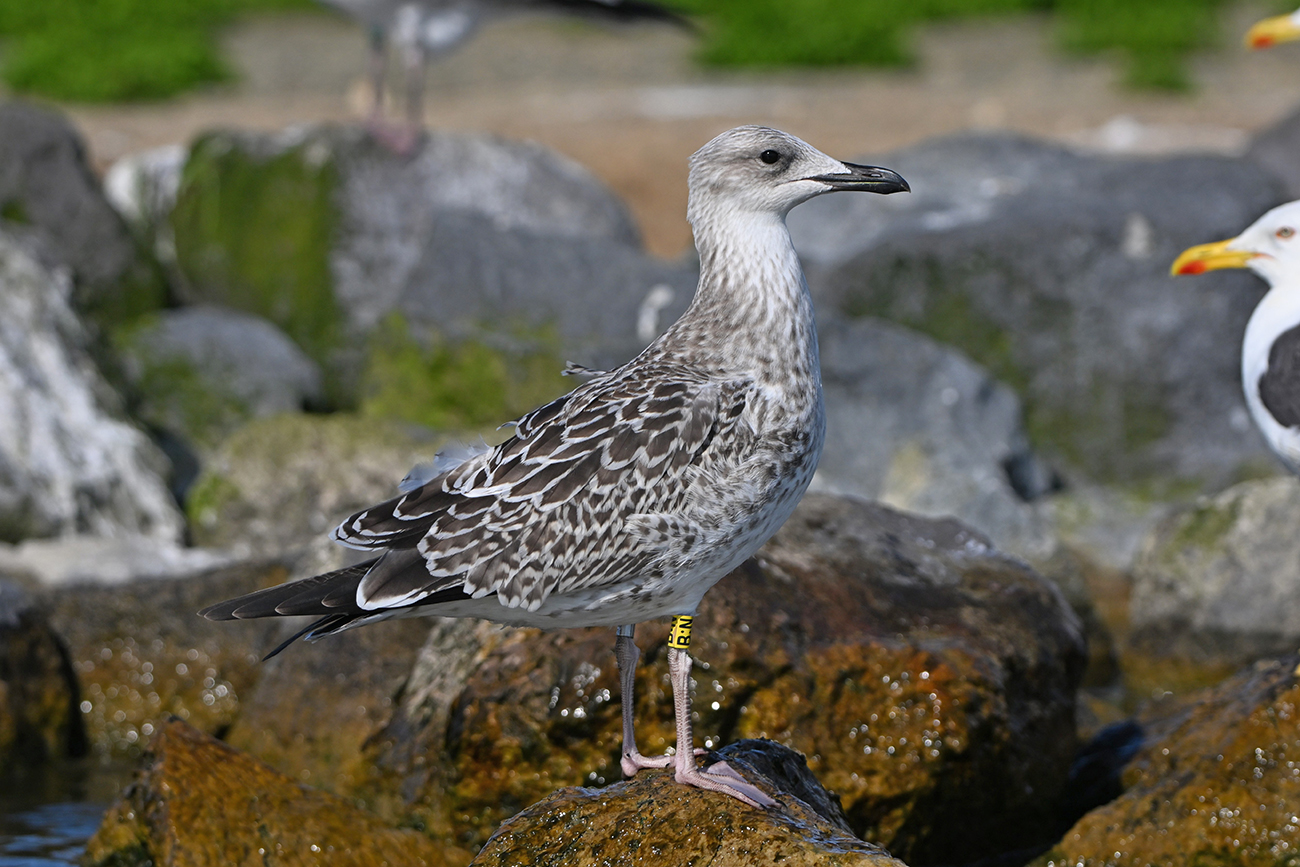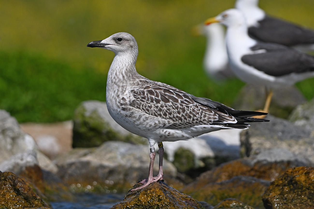 Tibia Y-B:N and metal Arnhem NLA 5.633.721, ringed as pullus Larus cachinnans on May 16 2025 at IJsselmeer (De Kreupel), Holland (5247.00 N 513.00 E), by ringer Leon Kelder.