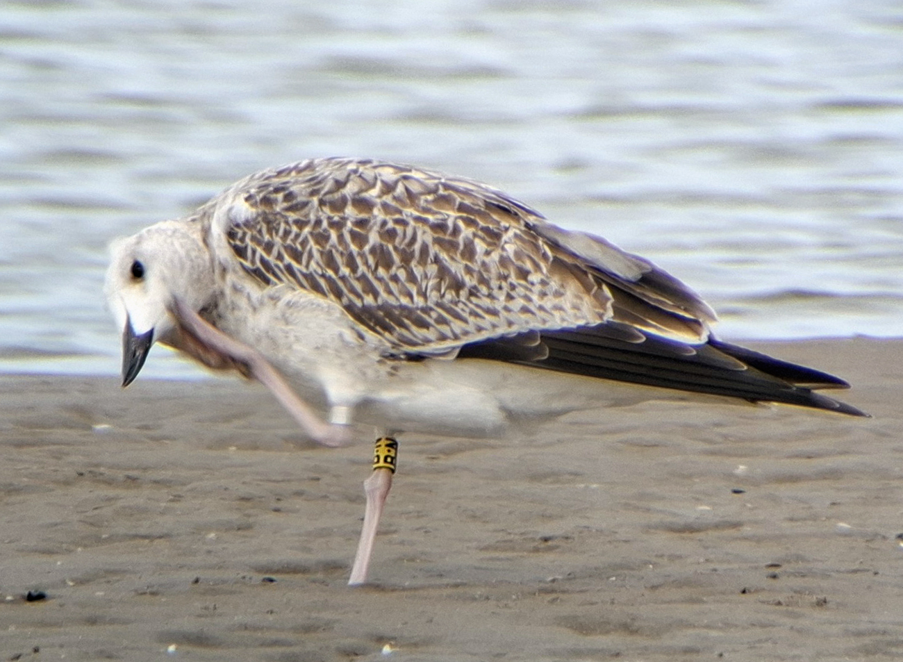 below: Caspian Gull cachinnans B:N 1CY, August 27 2025, Zeebrugge, Belgium. Picture: Björn Deduytsche.