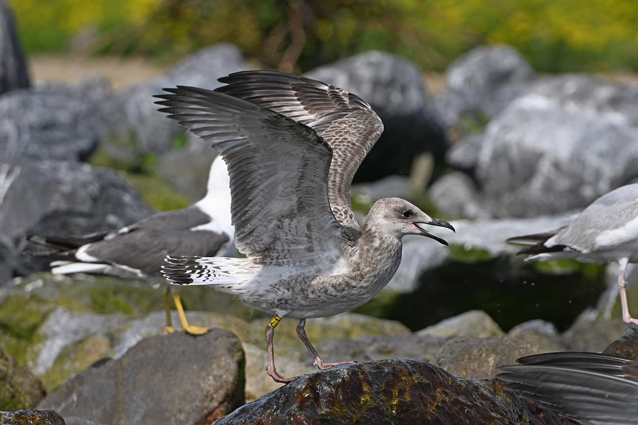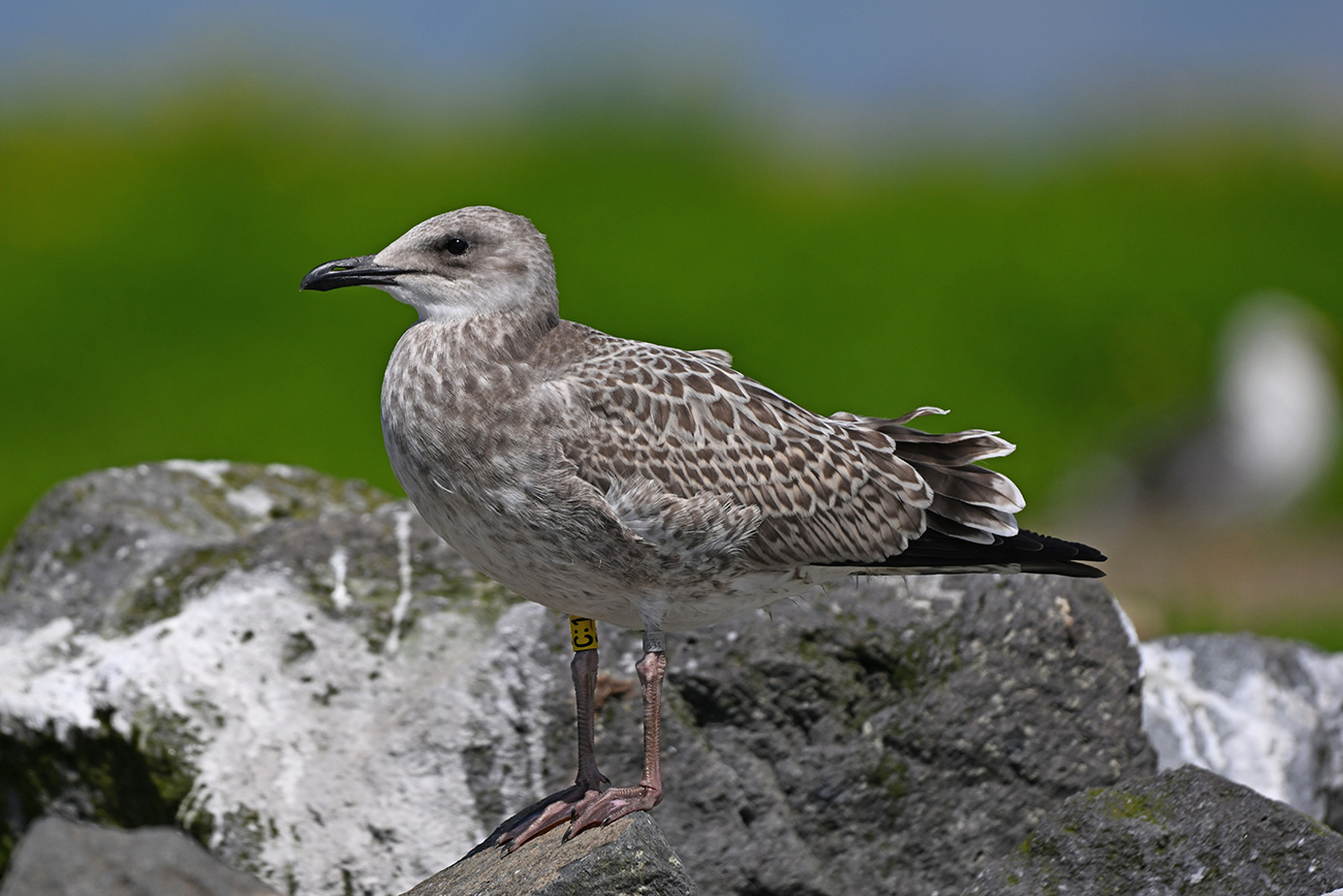 Tibia Y-C:1 and metal 5.633.737, ringed as pullus Larus cachinnans on May 16 2025 at IJsselmeer (De Kreupel), Noord-Holland, by ringer Leon Kelder.