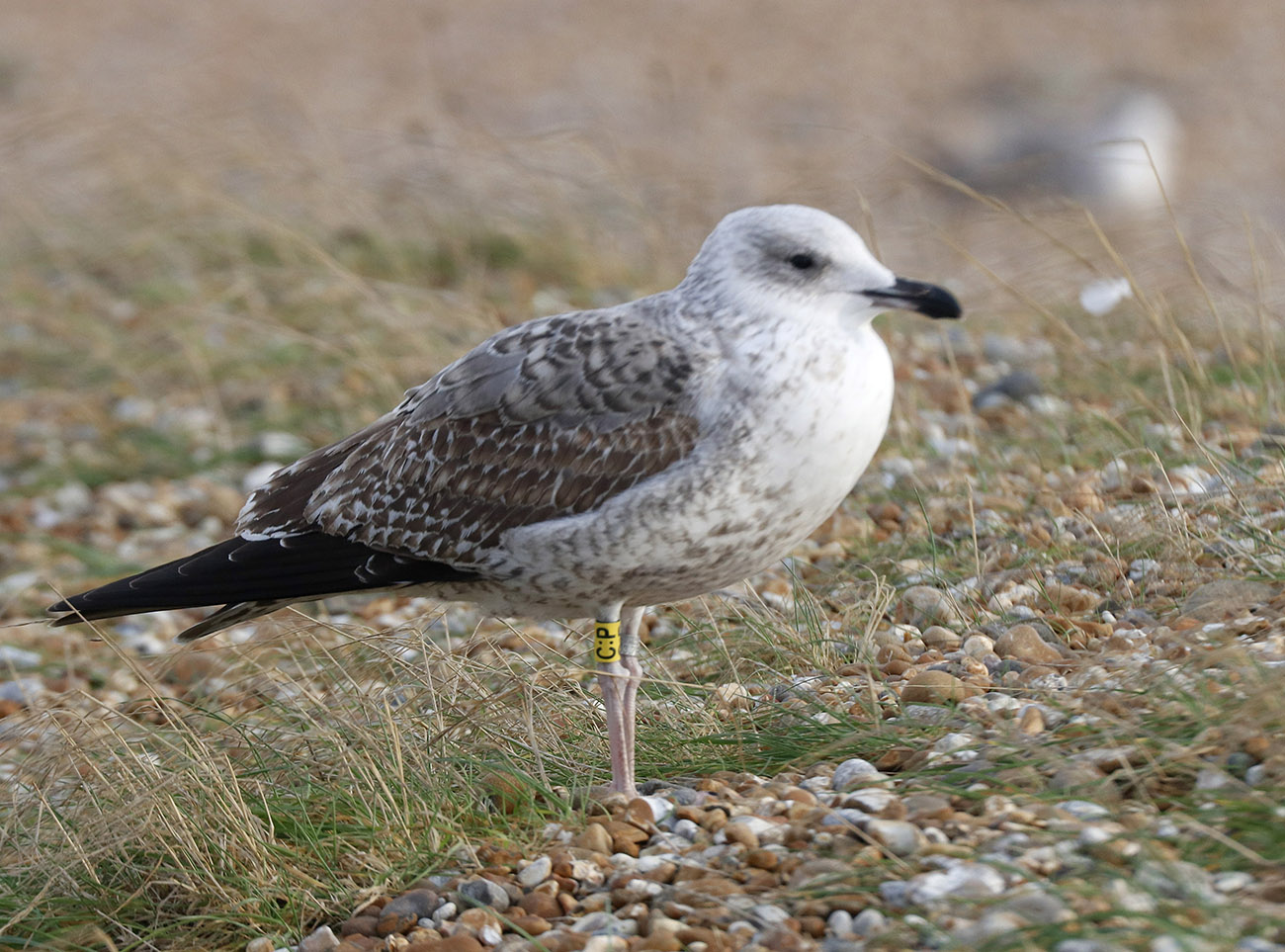 below: Caspian Gull cachinnans C:P 1CY, December 16 2025, Dungeness - Kent, England. Picture: David Walker.