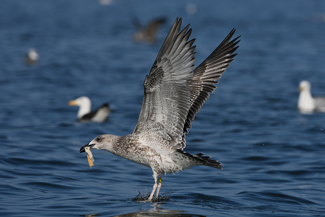 below: Caspian Gull cachinnans D:6 1CY, August 11 2025, colony De Kreupel, the Netherlands. Picture: Thijs Horst & Mars Muusse.