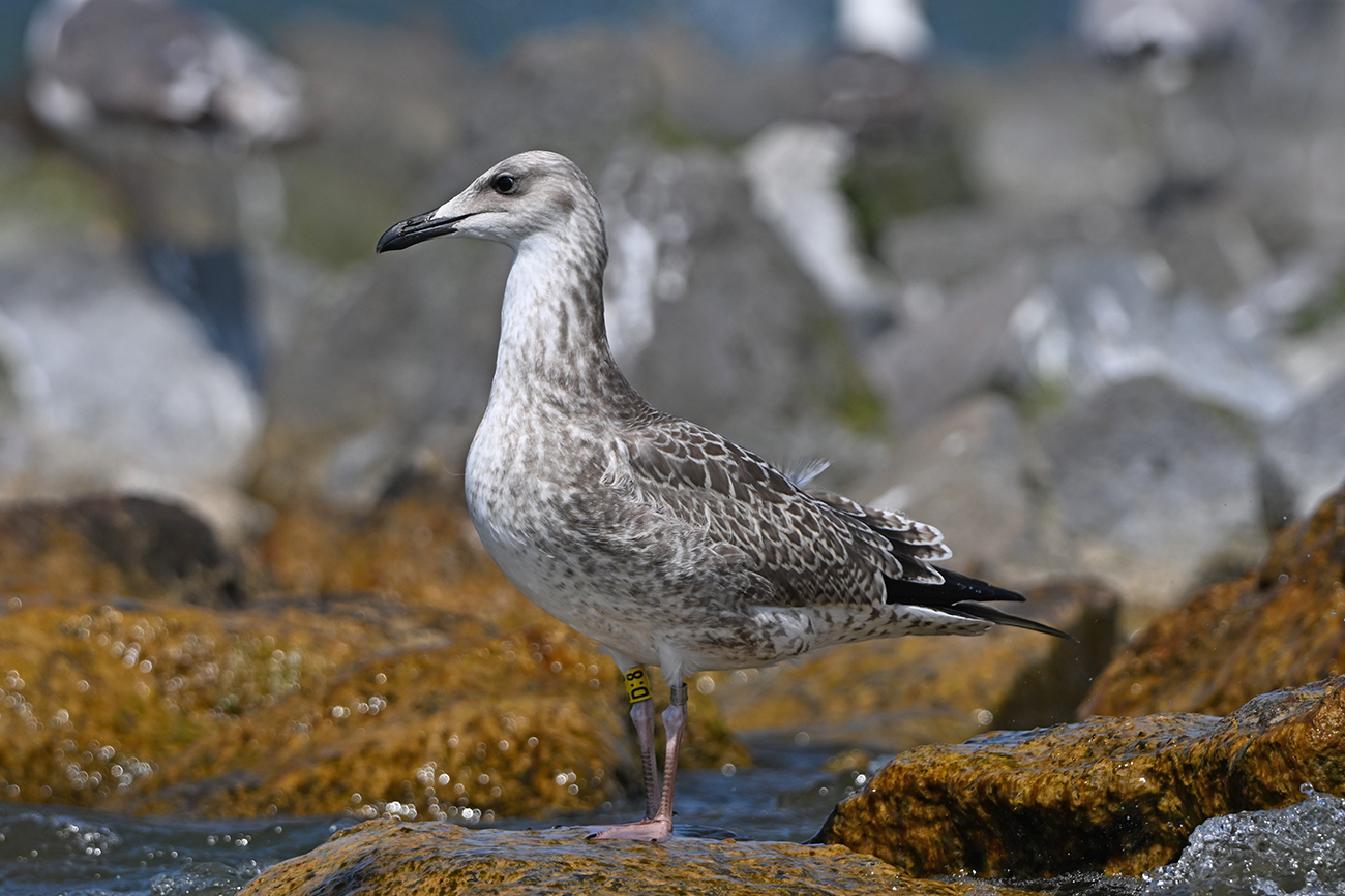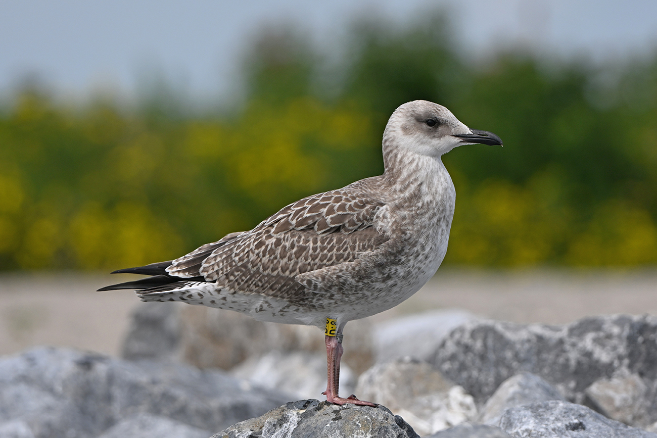 Tibia Y-D:8 and metal NLA 5.633.783, ringed as pullus Larus cachinnans on May 22 2025 at IJsselmeer (De Kreupel), Noord-Holland, by ringer Leon Kelder.