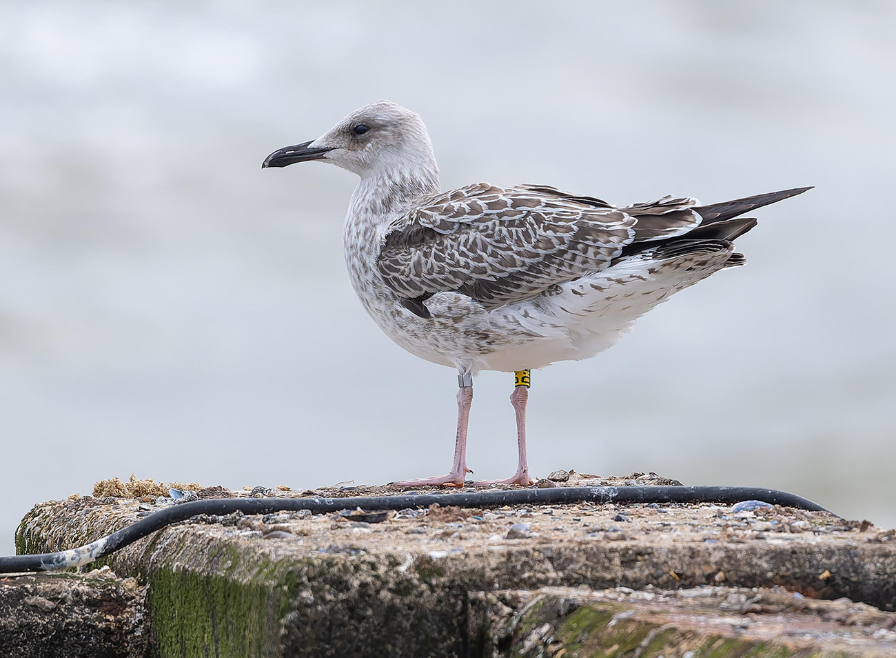 Tibia Y-D:H and metal NLA 5.633.793, ringed as pullus Larus cachinnans on May 22 2025 at De Kreupel, Holland (5247.00 N 513.00 E).