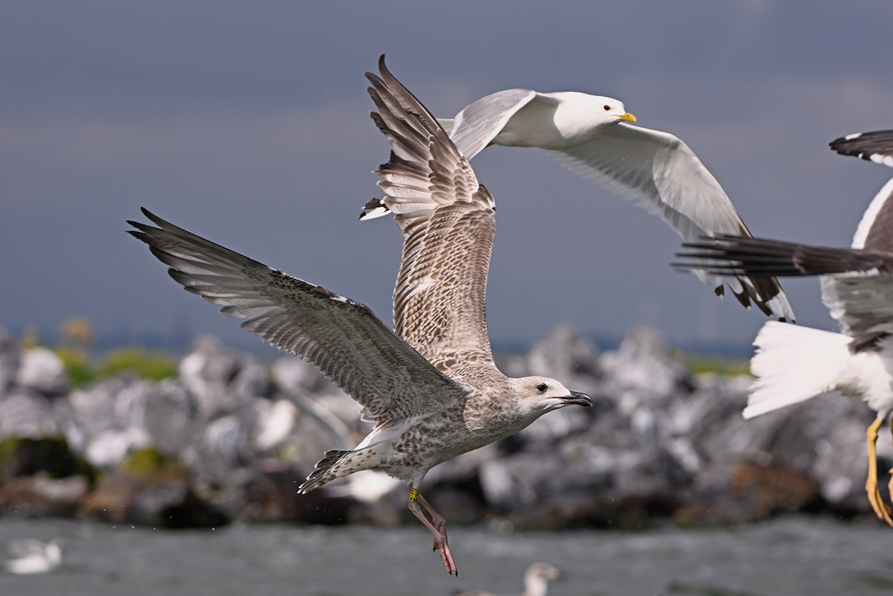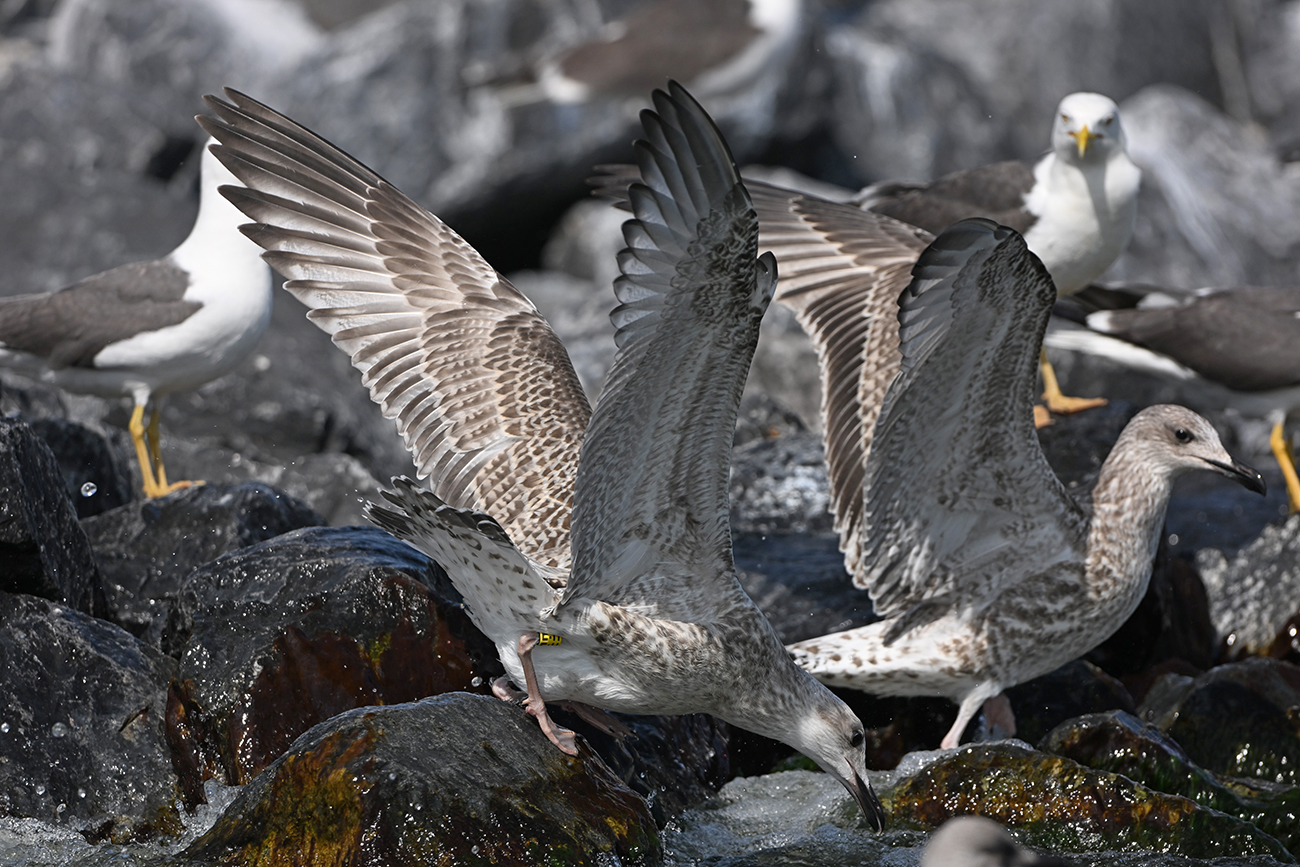 below: Herring Gull argenteus hybrid E:H 1CY, July 13 2025, colony De Kreupel, the Netherlands. Picture: Thijs Horst & Mars Muusse.