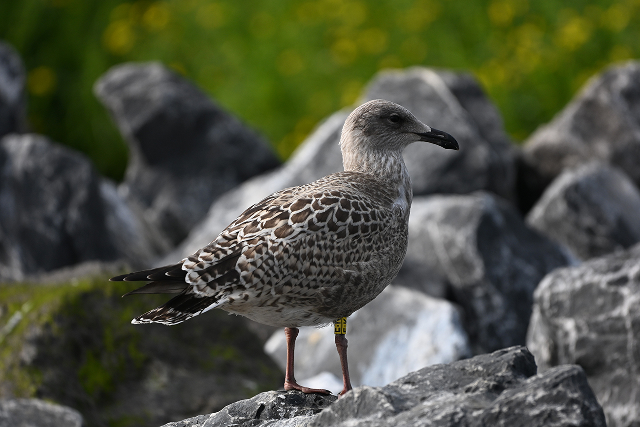 Tibia Y-E:K and metal Arnhem NLA 5.633.834, ringed as pullus Larus argentatus on May 30 2025 at IJsselmeer (De Kreupel), Holland (5247.00 N 513.00 E), by ringer Leon Kelder.