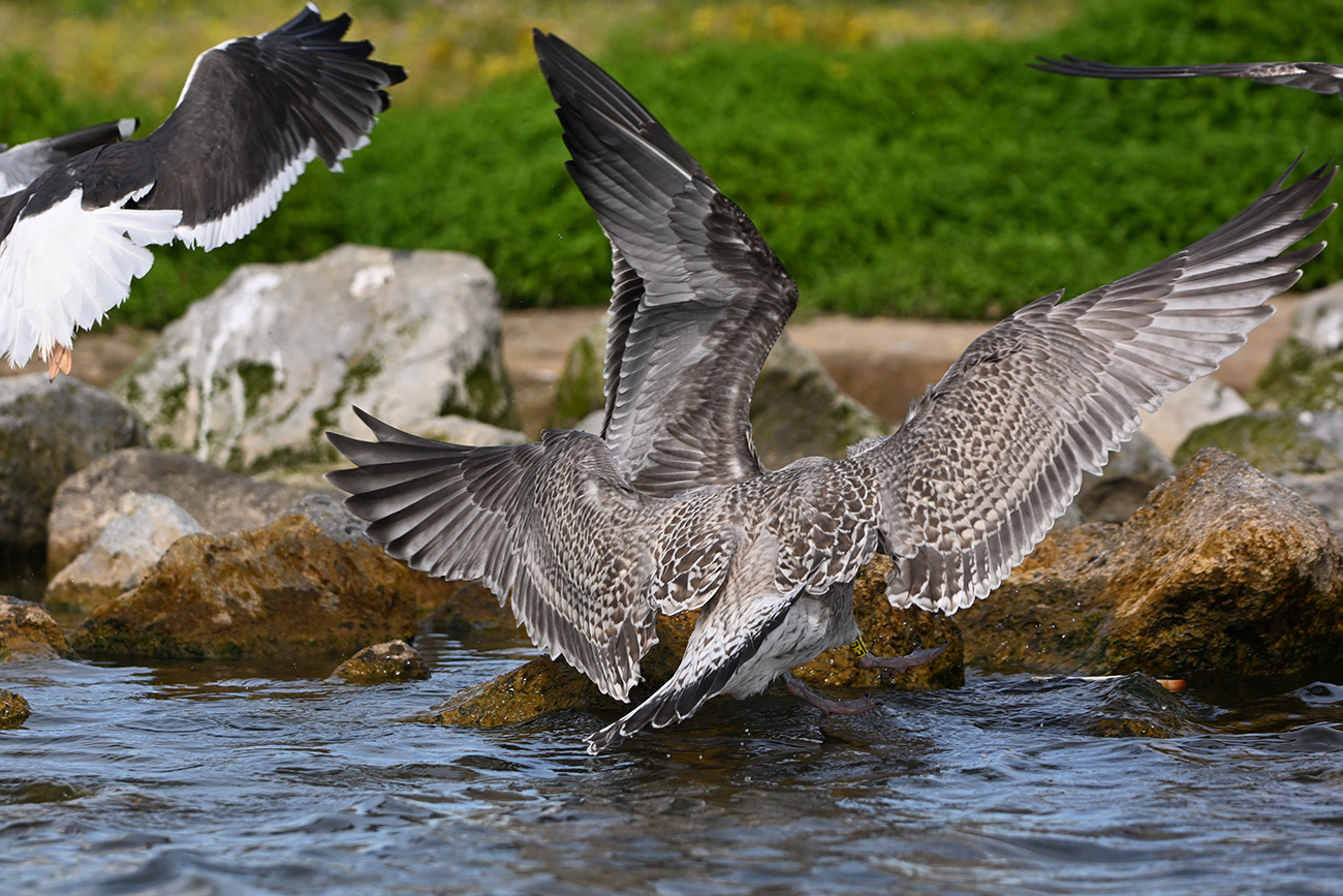 below: Herring Gull argenteus E:L 1CY, July 13 2025, colony De Kreupel, the Netherlands. Picture: Thijs Horst & Mars Muusse.