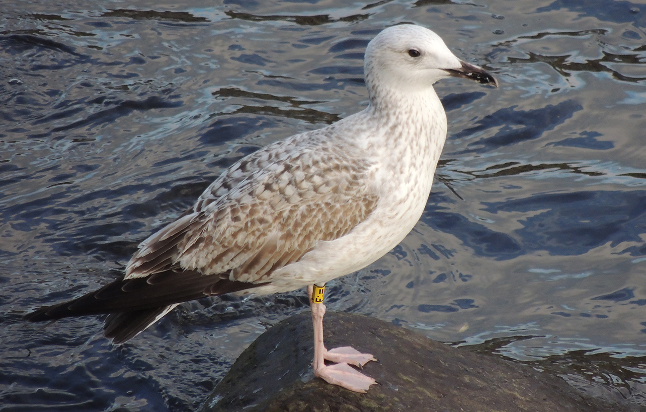 below: Caspian Gull cachinnans F:= 2CY, January 12 2026, San Sebastián, Spain. Picture: Itziar Gutierrez.