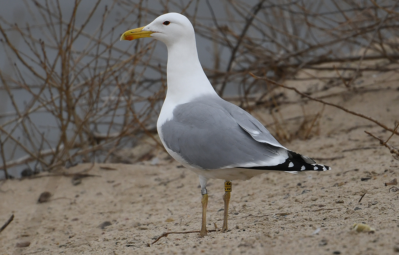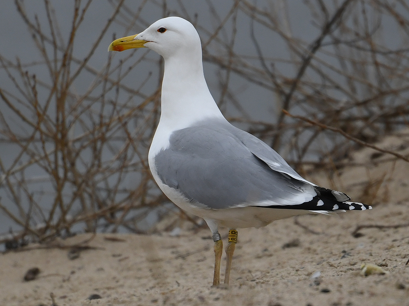 below: Caspian Gull cachinnans 8||R 5CY, April 08 2021, Kępa Nadbrzeska, Poland. Picture: Marcin Sidelnik.