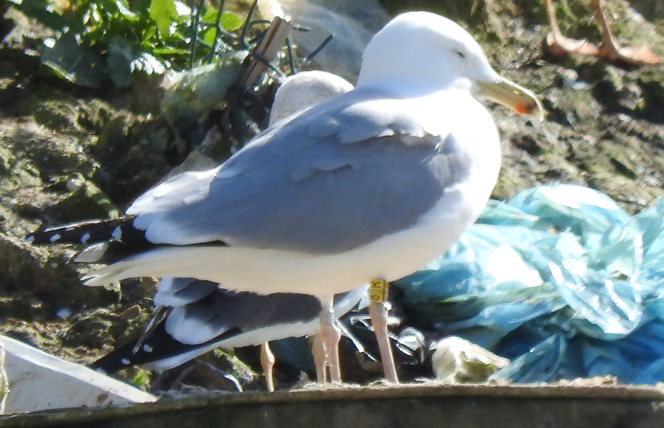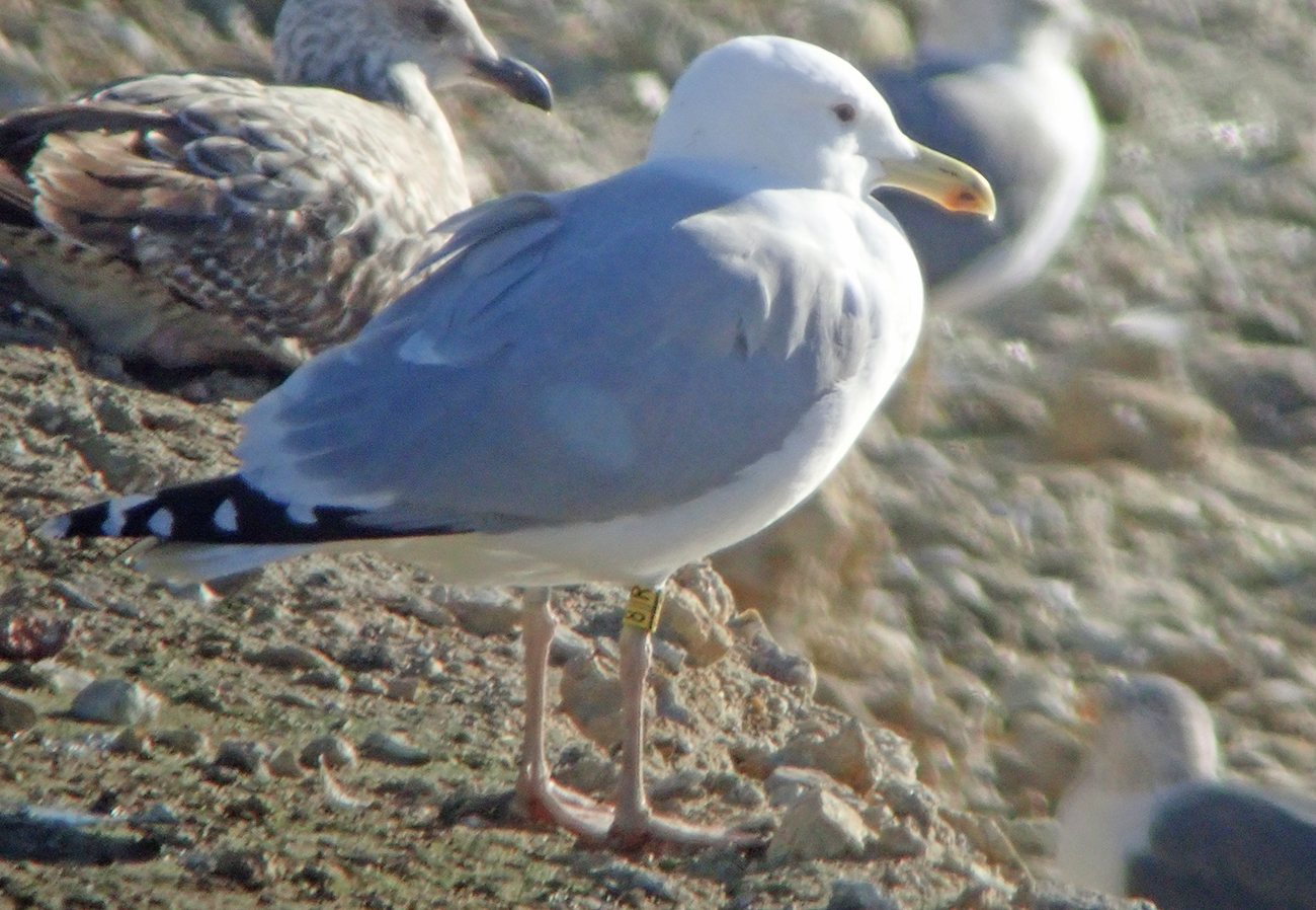 Tibia Y-8||R and metal NLA Arnhem 6.179.696, ringed as 1CY Larus cachinnans on August 31 2017 at Scheveningen (Havens en Havenhoofden), the Netherlands (5206.00 N 416.00 E) - ringer Roland-Jan Buijs.