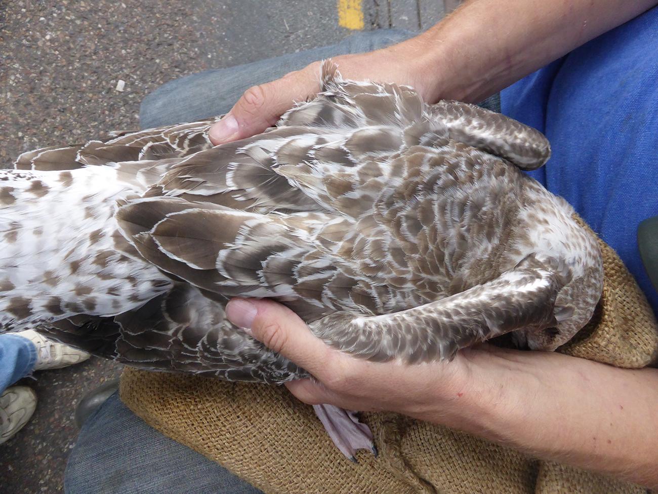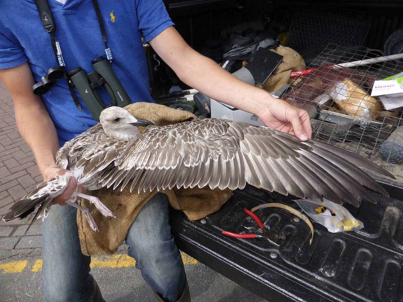below: Caspian Gull cachinnans 8||R 1CY, August 31 2017, Scheveningen, the Netherlands. Picture: Roland-Jan Buijs.