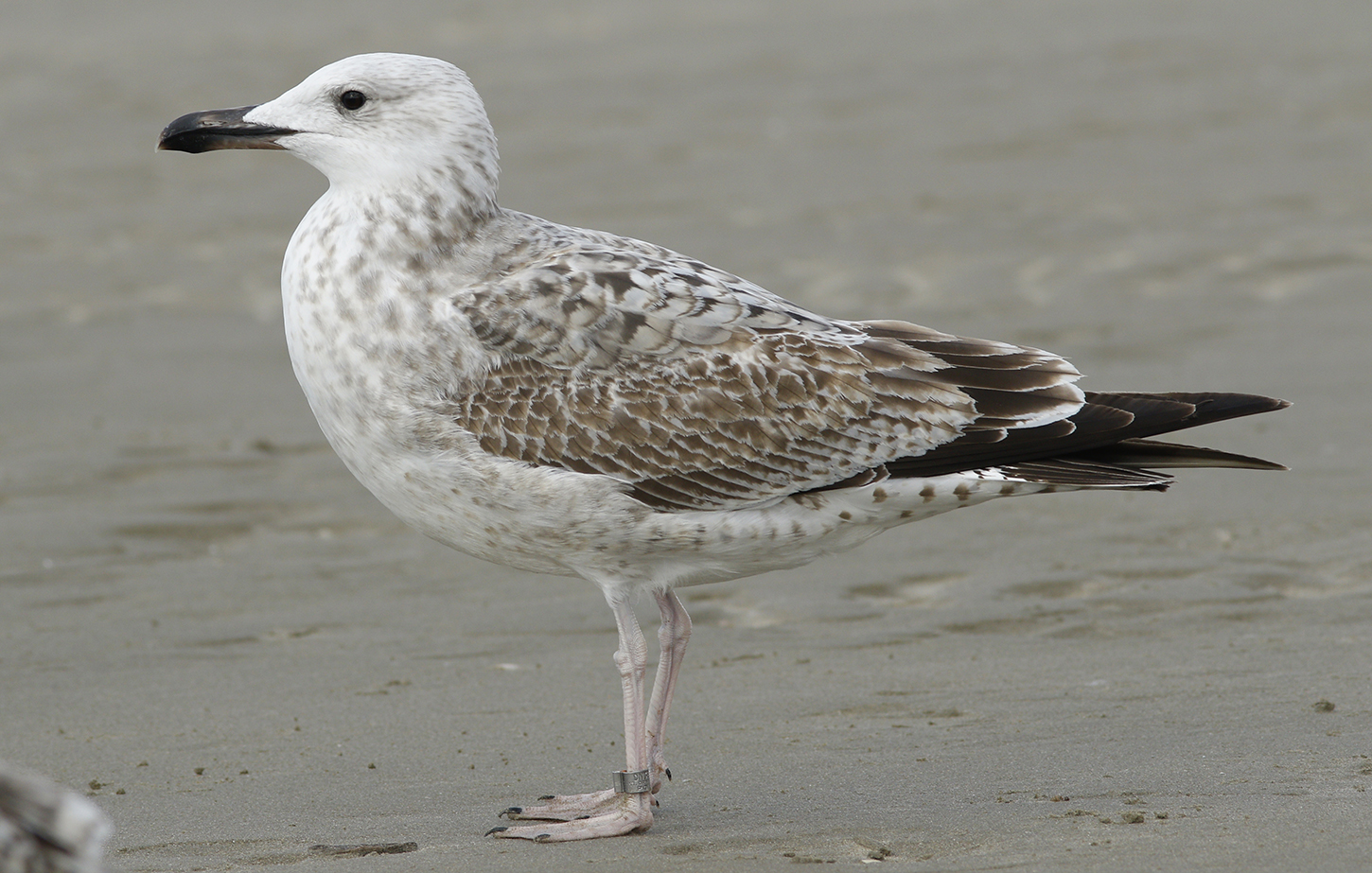 Caspian Gull cachinnans PLG DN38889 1CY, October 10 2020, IJmuiden beach, the Netherlands. Picture: Mars Muusse.Maybe some Herring Gull influences, a back-cross maybe? Metal ring Gdansk PLG DN38889, ringed as pullus "Larus argentatus/cachinnans/michahellis" on May 03 2020 on an island in river WISŁA, at KĘPA NADBRZESKA, OTWOCK, Poland. Recoveries: |