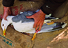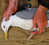 Larus argentatus 4P30 adult (plus hybrid offspring 7P84 & 7P85), May, July & December 2014, Poland. Picture: Łukasz Bednarz ringing team. |