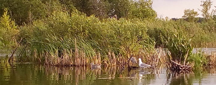 voivodeship), in Polesie National Park. Gulls nest here on a natural island covered by grass and