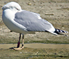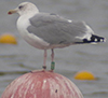 Adult, with limited speckling in iris (0-1%) and much black in wingtip, in these two traits differing from average cachinnans and therefore considered "Larus argentatus sensu lato". |