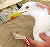 Gull spec Larus argentatus sensu lato P407 adult, April 20 2012 & September 21 2012, Wytyckie Lake - Urszulin, Poland. Picture: Łukasz Bednarz ringing team.