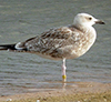 Larus cachinnans x michahellis hybrid 8P36 1CY, October 20 2005, Goczalkowice Reservoir, S Poland. Picture: Robert Zbronski. |