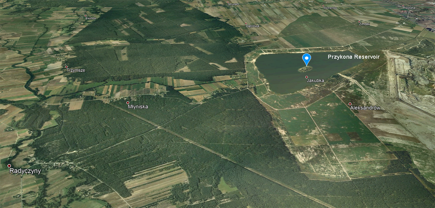 Przykona Reservoir: 52°00'20.6"N 18°39'28.8"E, in central Poland is a post-mining reservoir. | |||