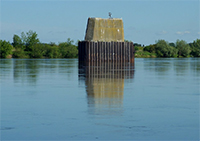 Kraków-Dąbie: 50°03'15.7"N 19°58'38.4"E, breakwater in river Vistula in Kraków. | |||