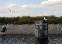 Włocławek: 52°39'11.6"N 19°08'30.0"E, breakwater on Vistula river and also roof-top of hall. Once a much larger colony and one of the well-known colonies in central Poland, as for this colony mixed breeding between Herring and Caspian Gulls has been documented extensively. Also the location where ringing programmes were started early in the colonisation process of Caspian Gull, resulting in many observations abroad. A detailed page HERE, with loads of images of ringed birds. |